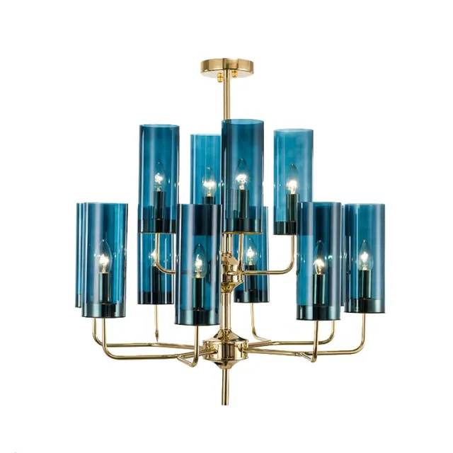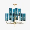 Люстра Brass & Blue Glass Tube by Hans-Agne Jakobsson (12 плафонов, синий)