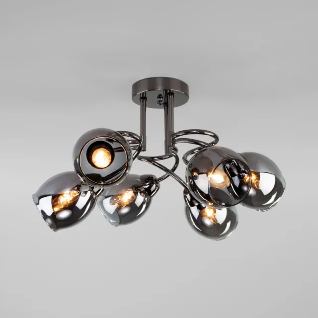 Модель 30171/6 черный жемчуг выполнена в современном стиле и имеет форму круга, пердназначена для установки в гостинной. Степень защиты модели - IP20. Площадь освещения - до 18 м2. Плафон у модели прозрачного цвета, овальной формы и выполнен из стекла. Арматура выполнена в черном цвете, сделана из металла. Способ крепления Eurosvet 30171/6 черный жемчуг - монтажная пластина, устанавливается на потолок.