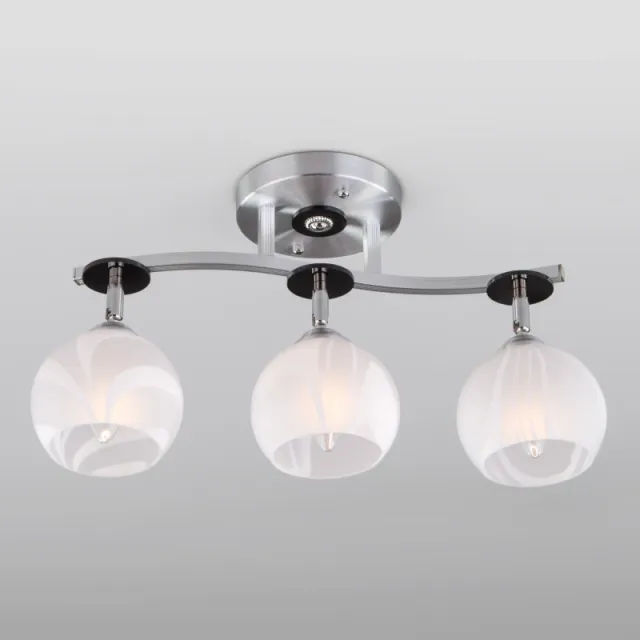Модель 9643/3 алюминий/белый выполнена в современном стиле и имеет форму прямоугольника, пердназначена для установки на кухне. Степень защиты модели - IP20. Площадь освещения - до 12 м2. Плафон у модели белого цвета, формы шара и выполнен из стекла. Арматура выполнена в цвете хром, сделана из металла. Eurosvet 9643/3 алюминий/белый устанавливается на потолок.
