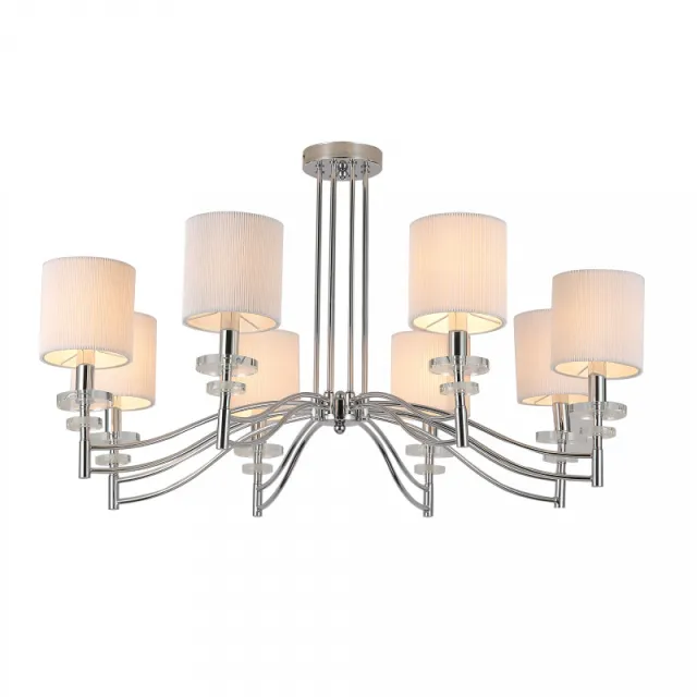 Модель 2680-8P выполнена в современном стиле и имеет форму круга, пердназначена для установки в спальне. Степень защиты модели - IP20. Площадь освещения - до 24 м2. Плафон у модели белого цвета, цилиндрической формы и выполнен из ткани. Арматура выполнена в цвете хром, сделана из металла. Способ крепления Favourite 2680-8P - монтажная пластина, устанавливается на потолок.
