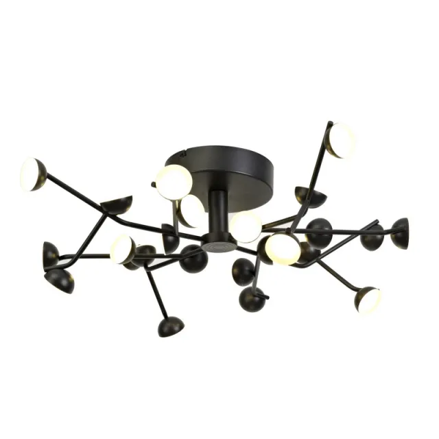 Модель 6423 выполнена в современном стиле и имеет форму круга, пердназначена для установки в больших залах. Степень защиты модели - IP20. Площадь освещения - до 24 м2. Плафон у модели черного цвета, круглой формы и выполнен из алюминия. Арматура выполнена в черном цвете, сделана из алюминия. Способ крепления Mantra 6423 - монтажная пластина, устанавливается на потолок.