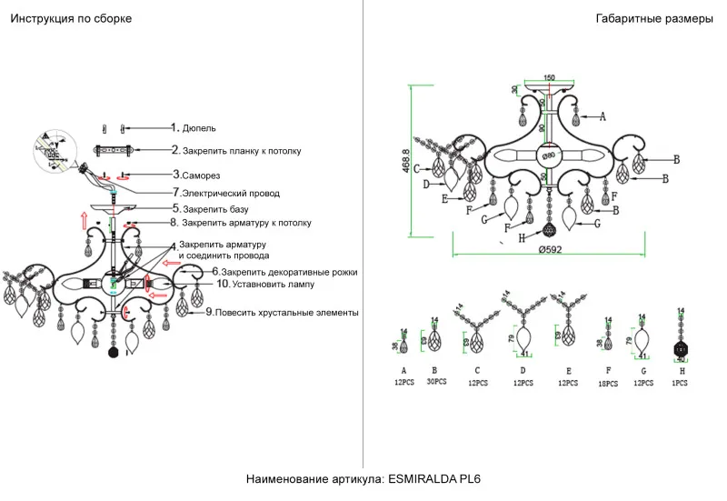 Накладная люстра Crystal Lux ESMIRALDA PL6 SILVER