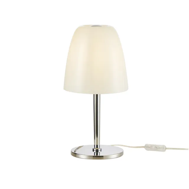 Модель 2961-1T выполнена в современном стиле и имеет форму круга, пердназначена для установки в спальне. Степень защиты модели - IP20. Площадь освещения - до 3 м2. Плафон у модели белого цвета, формы трапеции и выполнен из стекла. Арматура выполнена в цвете хром, сделана из металла. Favourite 2961-1T устанавливается на стол.