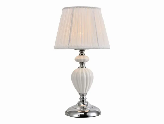 Модель 11001/T выполнена в стиле прованс и имеет форму круга, материал декора - керамика, пердназначена для установки в спальне. Степень защиты модели - IP20. Площадь освещения - до 4 м2. Плафон у модели белого цвета, конусной формы и выполнен из ткани. Арматура выполнена в цвете хром, сделана из металла. Newport 11001/T устанавливается на стол.