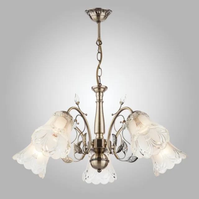 Модель 30009/5 античная бронза выполнена в стиле флористика и имеет форму круга, пердназначена для установки в гостинной. Степень защиты модели - IP20. Плафон у модели прозрачного цвета, и выполнен из стекла. Арматура выполнена в бронзовом цвете, сделана из металла. Eurosvet 30009/5 античная бронза устанавливается на потолок.