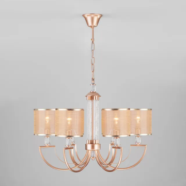 Модель 60099/6 перламутровое золото выполнена в современном стиле и имеет форму круга, материал декора - стекло, пердназначена для установки в спальне. Степень защиты модели - IP20. Площадь освещения - до 18 м2. Плафон у модели золотого цвета, цилиндрической формы и выполнен из ткани. Арматура выполнена в золотом цвете, сделана из металла. Способ крепления Eurosvet 60099/6 перламутровое золото - на крюк, устанавливается на потолок.