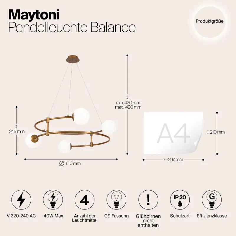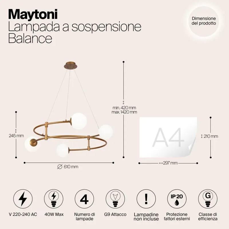 Подвесная люстра Maytoni MOD317PL-04G
