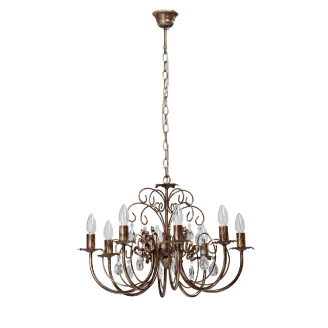 Модель V1169/8 выполнена в замковом стиле и имеет форму круга, пердназначена для установки в гостинной. Степень защиты модели - IP20. Площадь освещения - до 24 м2. Плафон у модели. Арматура выполнена в бронзовом цвете, сделана из металла. Способ крепления Vitaluce V1169/8 - на крюк, устанавливается на потолок.