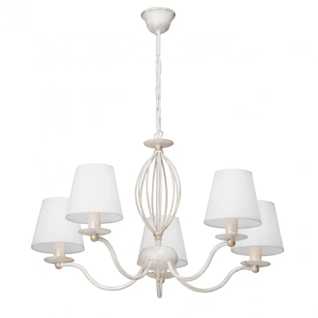 Модель V3733-0/5 выполнена в стиле прованс и имеет форму круга, пердназначена для установки в спальне. Степень защиты модели - IP20. Площадь освещения - до 15 м2. Плафон у модели белого цвета, конусной формы и выполнен из ткани. Арматура выполнена в белом цвете, сделана из металла. Способ крепления Vitaluce V3733-0/5 - на крюк, устанавливается на потолок.