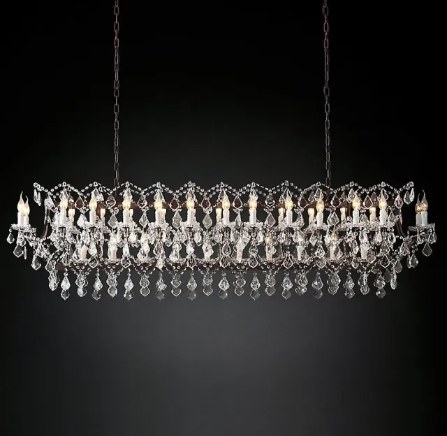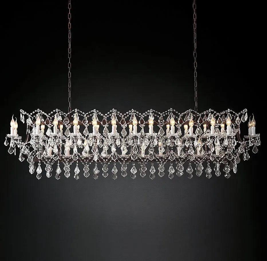 Подвесной дизайнерский светильник 19th C. Rococo Iron & Clear Crystal Rectangular Chandelier 74" by Restoration Hardware