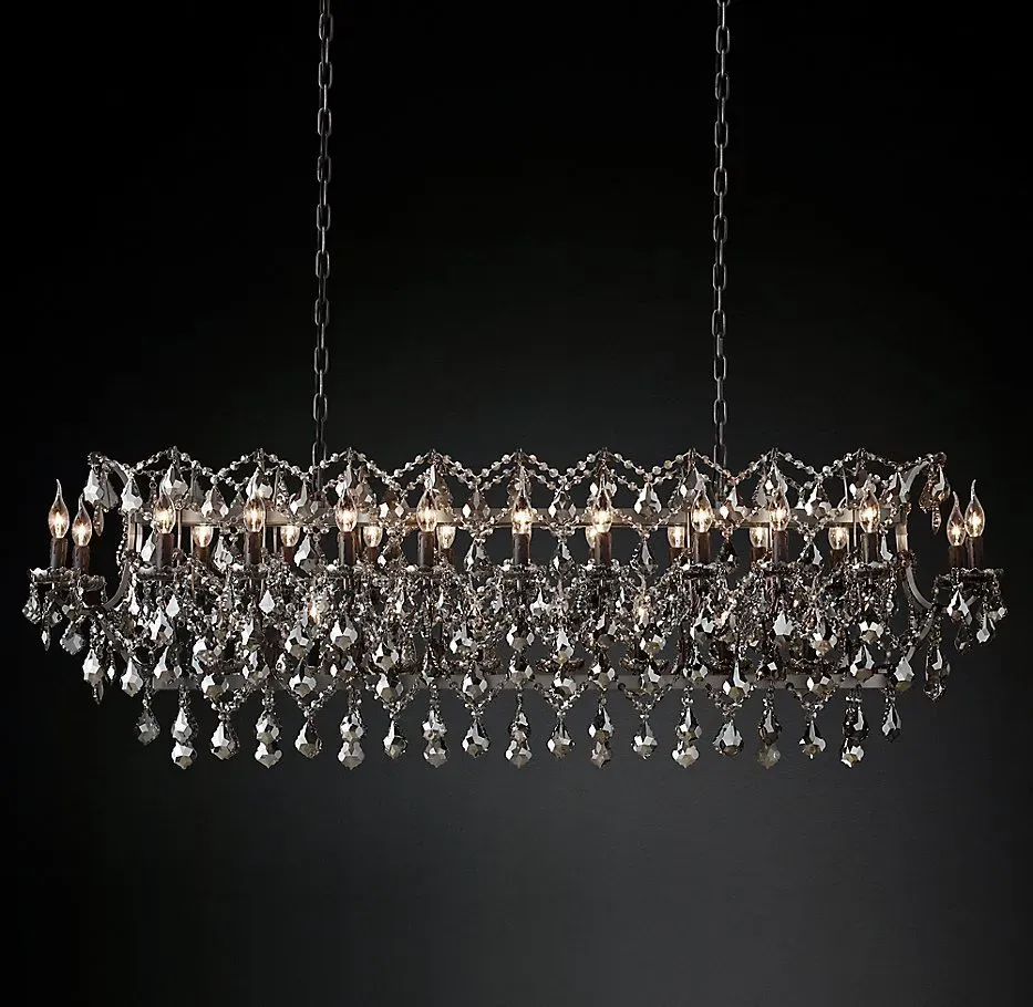 Подвесной дизайнерский светильник 19th C. Rococo Iron & Smoke Crystal Rectangular Chandelier 63" by Restoration Hardware