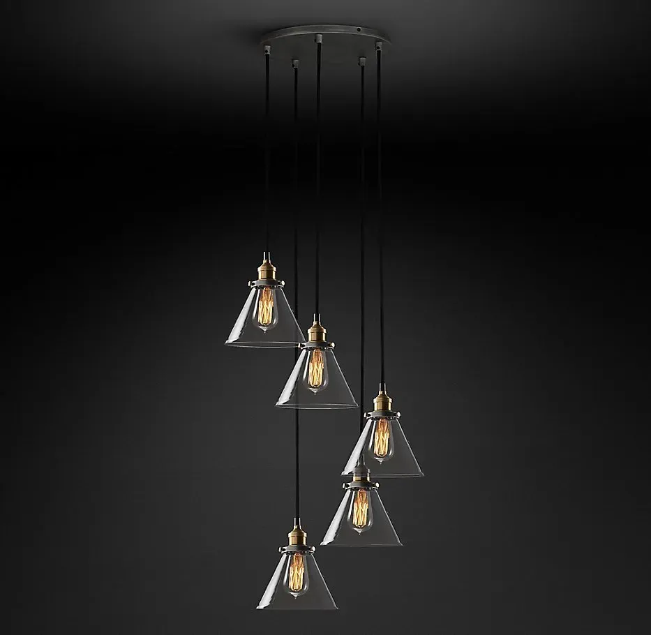 Подвесной дизайнерский светильник 20th C. Factory Filament Clear Glass Funnel Round Pendant by Restoration Hardware
