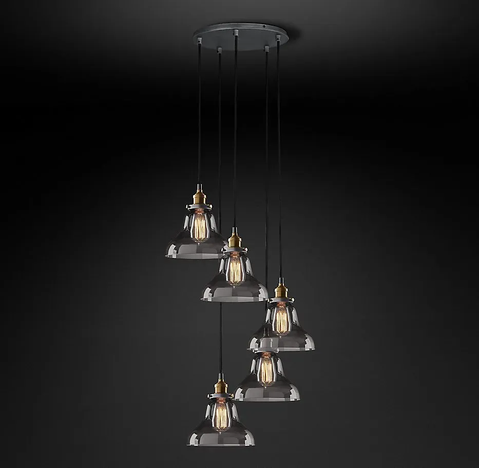 Подвесной дизайнерский светильник 20th C. Factory Filament Smoke Glass Boulangerie Round Pendant by Restoration Hardware