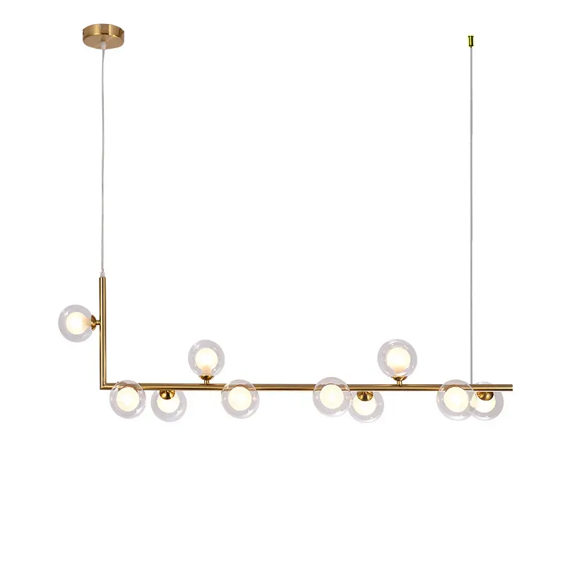 Подвесной дизайнерский светильник (золотой)Symmes by LightSnab 13 плафонов * Длина 150 см