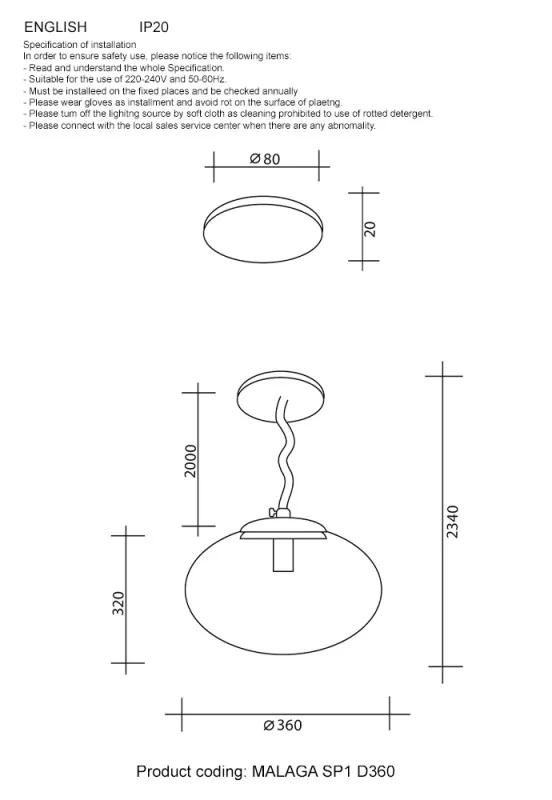 Подвесной светильник Crystal Lux MALAGA SP1 D360 COOPER