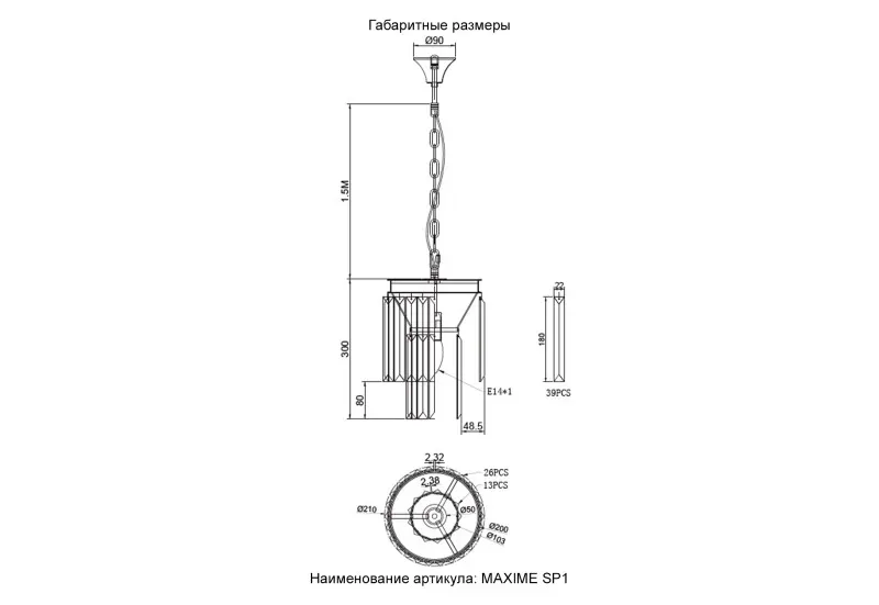 Подвесной светильник Crystal Lux MAXIME SP1 BLACK