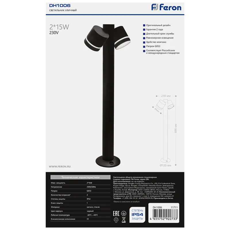 Садово-парковый светильник Feron 11711