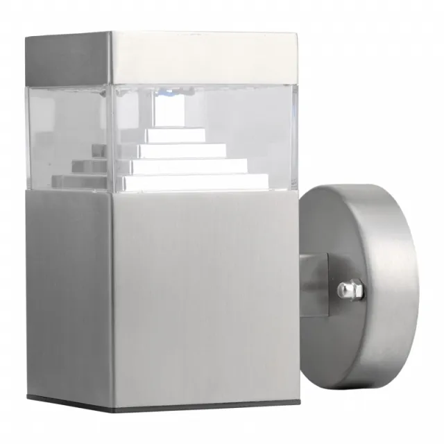 Модель 377615 выполнена в стиле хай-тек и имеет форму прямоугольника. Степень защиты модели - IP55. Площадь освещения - до 2 м2. Плафон у модели прозрачного цвета, квадратной формы и выполнен из пластика. Арматура выполнена в цвете матовый хром, сделана из металла. Способ крепления Lightstar 377615 - монтажная пластина, устанавливается на стену.